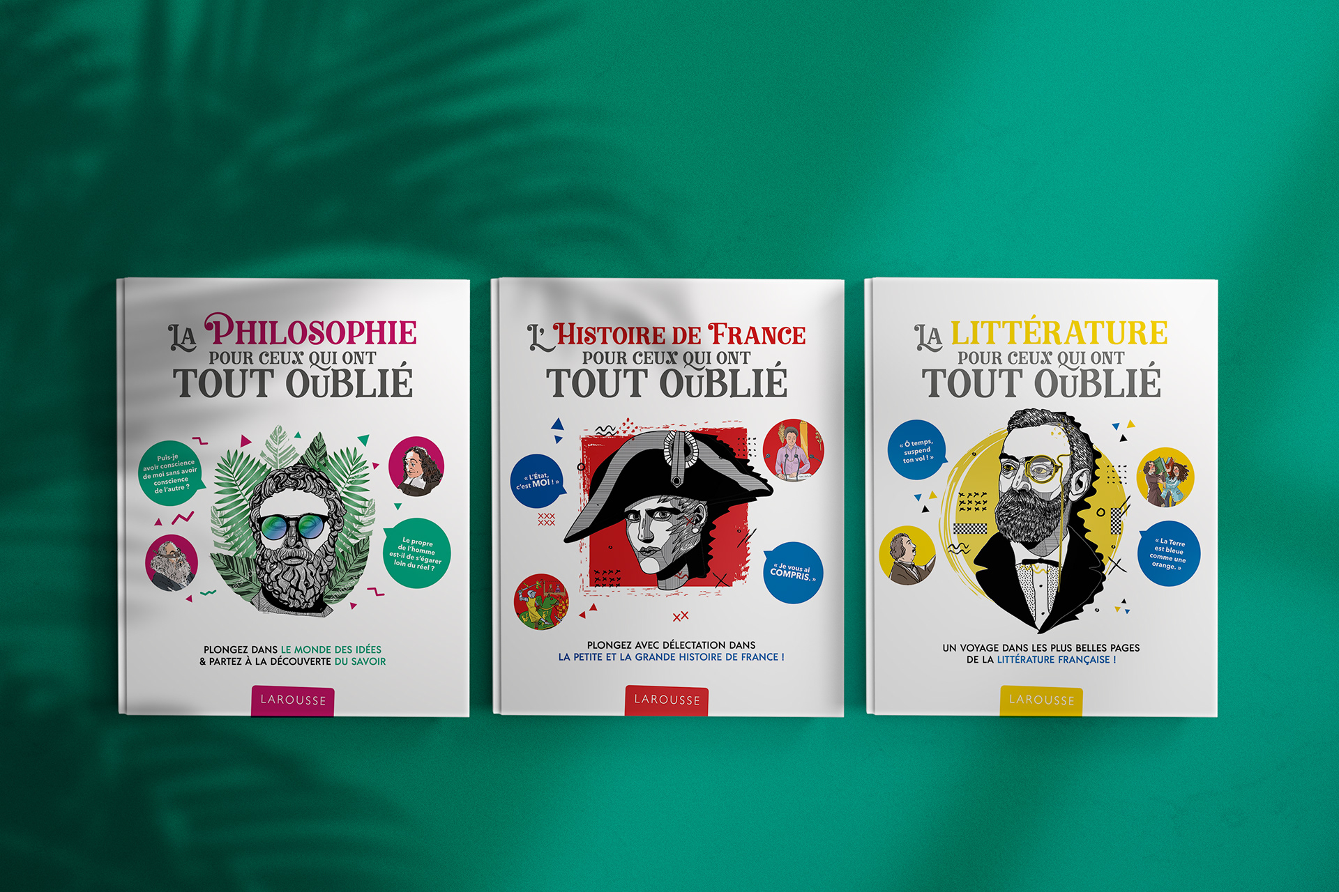 Création d'un principe de couverture pour une nouvelle présentation de trois titres d'une même collection. (Proposition non-retenue)