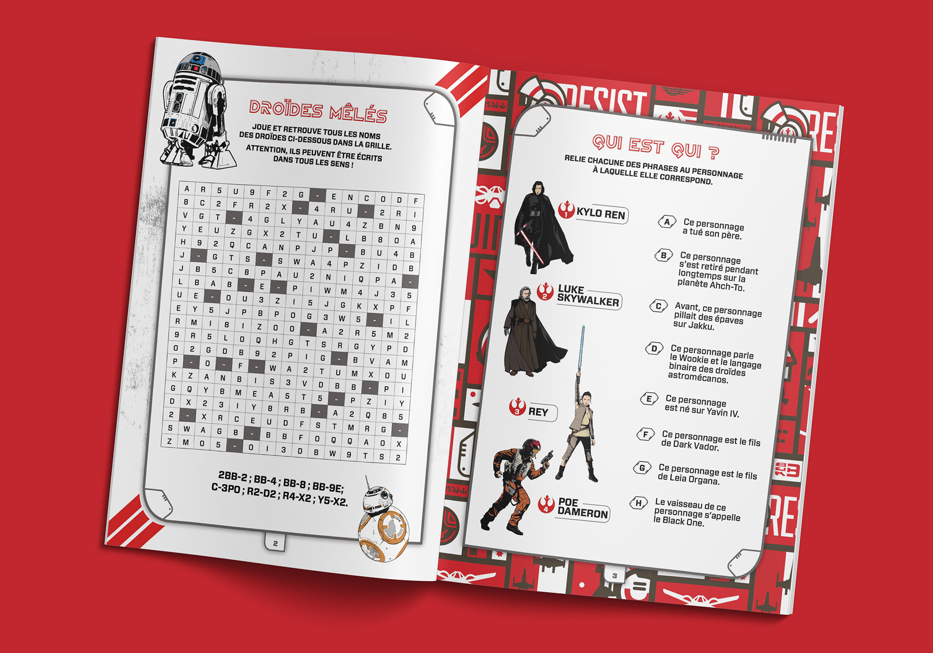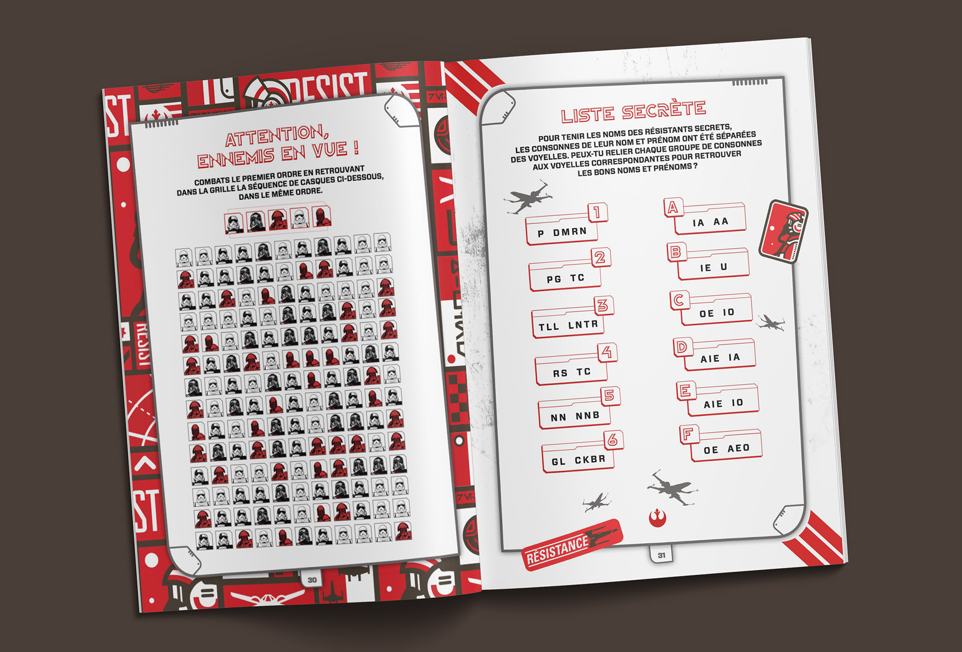 Création de la couverture, de la maquette intérieur et habillage des jeux selon les codes de l'univers Star Wars et de la collection.